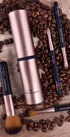 Metallic brush case with inner compartments to keep the brushes clean and safe.