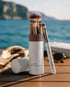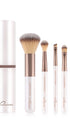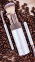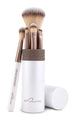 Here’s your perfect beauty companion for an afternoon with friends at the café or a busy day the office: the new Travel Set in a delightful creamy coffee design is your stylish freshness boost for any occasion. Discover the five most important brushes for applying makeup and touching up on the go! In an elegant light metal brush case, the complete vegan brush set fits comfortably in any handbag. The gentle, synthetic Nurai fibres allow for a super even application and blending of creamy and powdery textures. Achieve a flawless finish in no time and make your eyes sparkle. A must-have for all those who value perfect makeup in every situation.Face Brush: